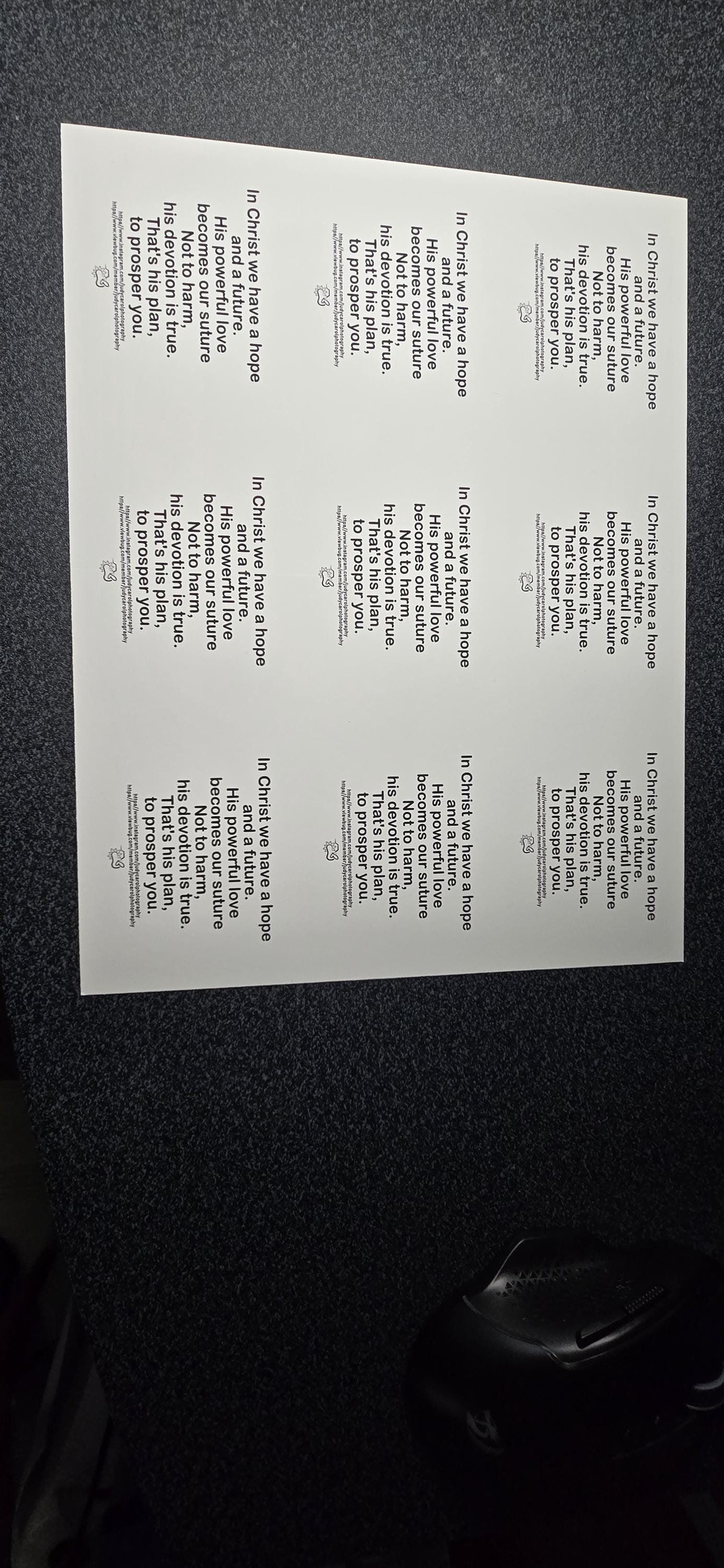 The bible verse or affirmations will be place on the back and front with back in black and front in color.